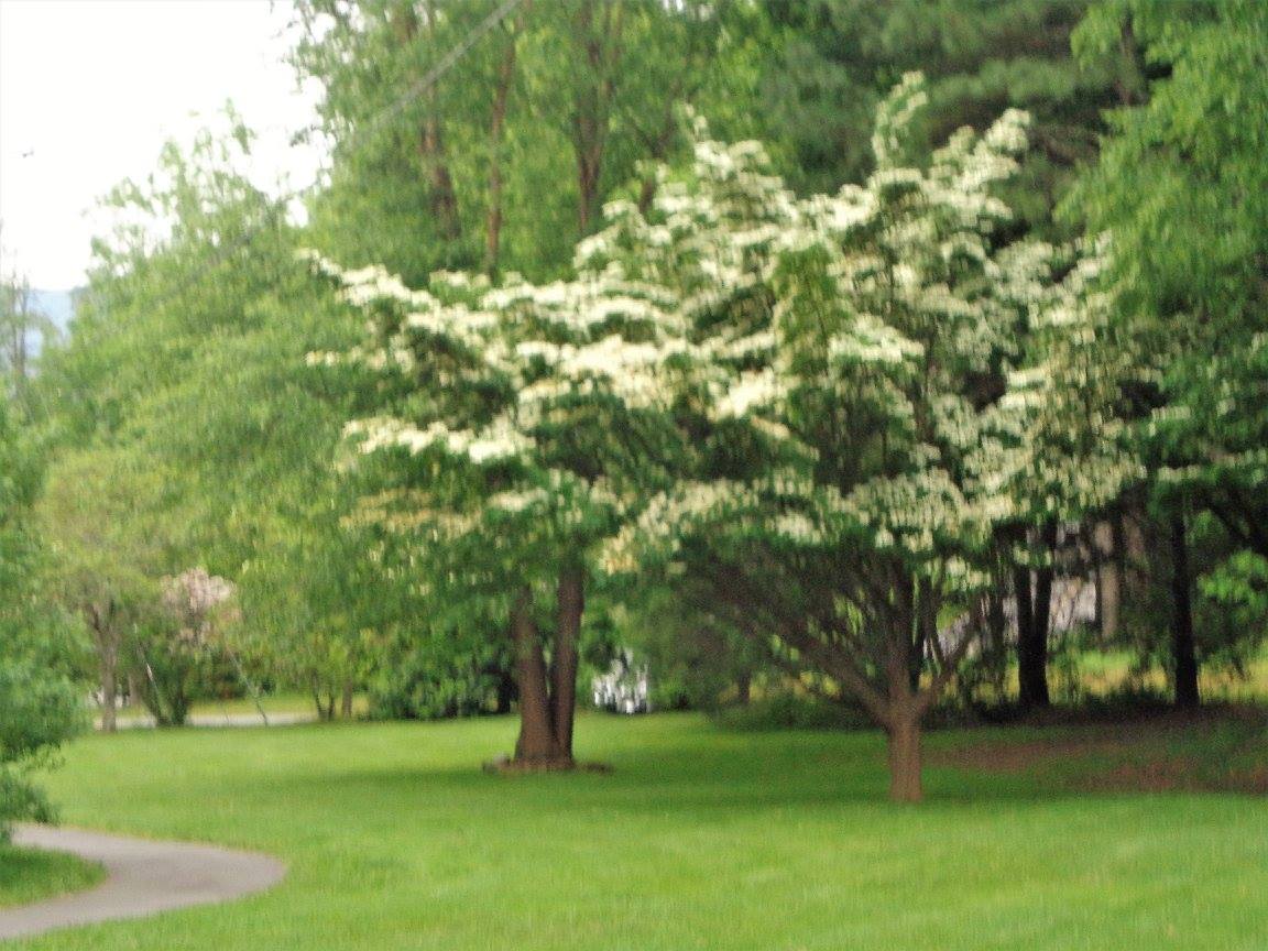 As we approached the grassy little parkway, I could see the beautiful dogwoods in bloom. Each blossom welcomed us with the sign of the cross. The white against the green was so pretty.