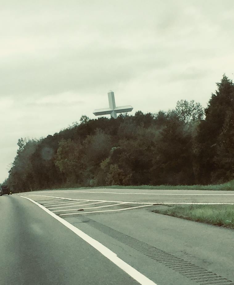 As we were driving out of the mountains our last glimpse was of this cross peaking over the tops of the trees.